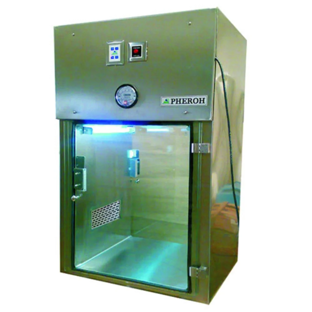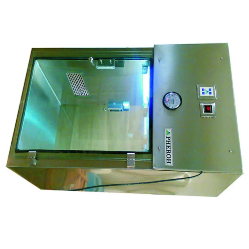 We are engaged in presenting a comprehensive range of Dynamic Pass Box which is safe and contains clean zone cross-contamination of material in transit. In these boxes, one door is opened at a time with electromagnetic interlocking, so as to avoid cross-contamination. Further, UV tube light will be on when both doors are closed. Dynamic pass box with a standard Mini-pleat, PHEROH make pre-filter and Motor Blower assembly are offered in options.